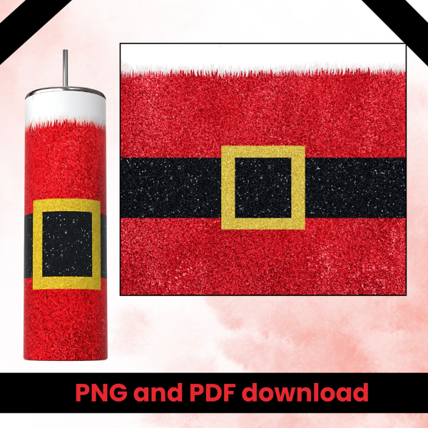 20oz skinny straight tumbler wrap png, glittering Santa belt, png download, Christmas tumbler wrap png