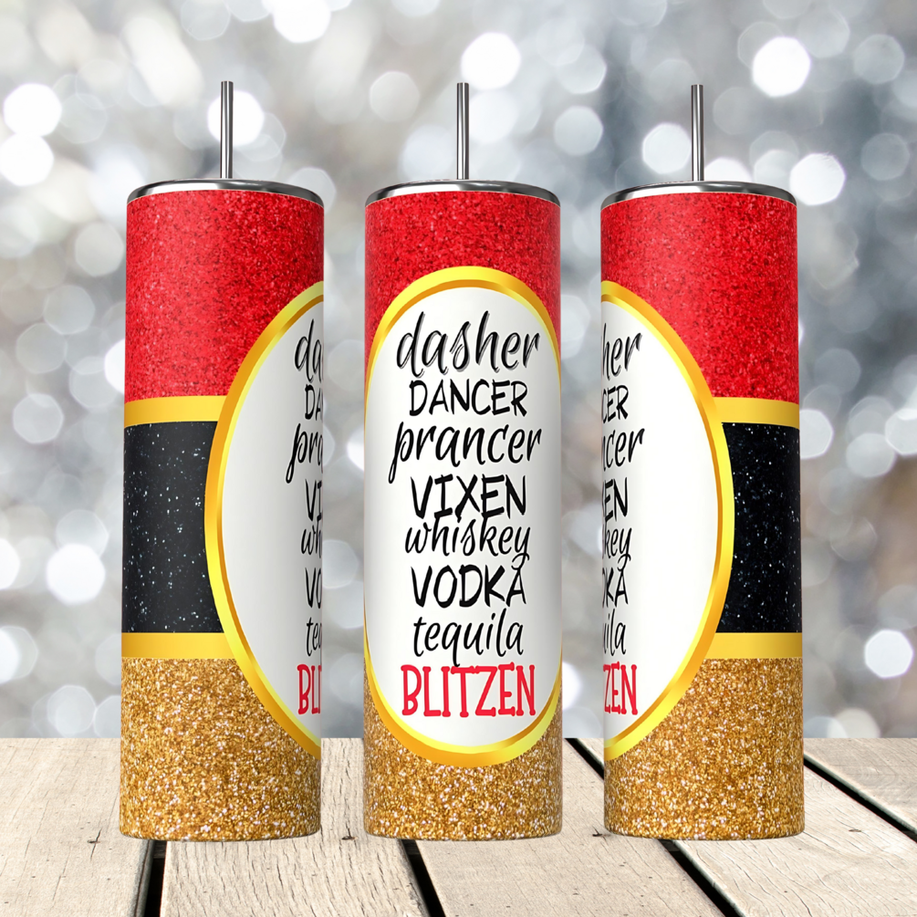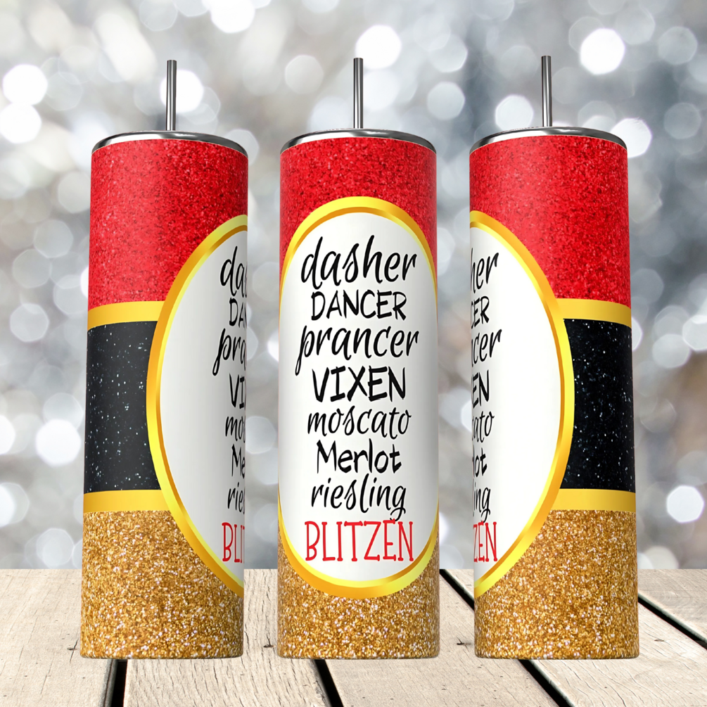 20oz skinny straight tumbler wrap png, wine and reindeer or liquor and reindeer names, png download, funny Christmas, tumbler wrap png