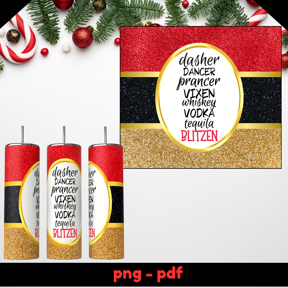 Get into the holiday spirit with our 20oz skinny straight tumbler wrap featuring wine and reindeer names and another featuring liquor and reindeer names! This funny Christmas design is perfect for adding some festive cheer to your drinkware collection. Download the PNG file and wrap your tumbler in style. Cheers to a merry and bright holiday season!