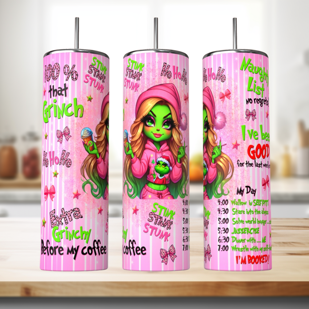 Get into the holiday spirit with our 20oz Skinny Tumbler wrap featuring the Grinch Girl designs. Perfect for Christmas sublimation projects. Download now!!