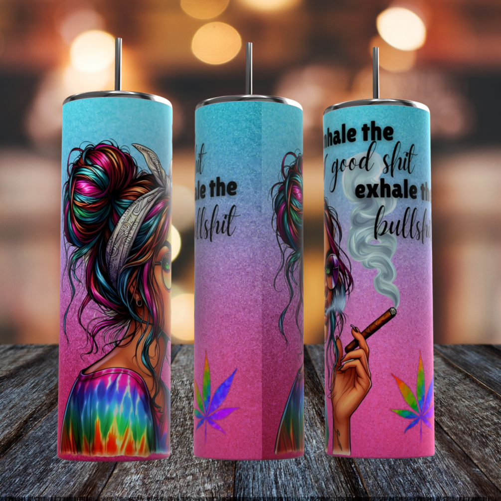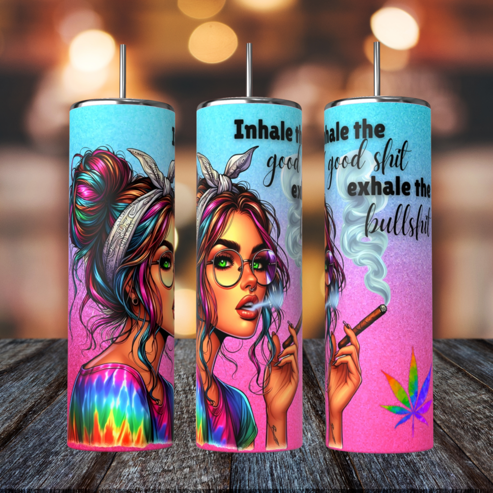 20oz Skinny Tumbler STRAIGHT “Inhale the good shit, exhale the bullshit” weed stoner sublimation design PNG download