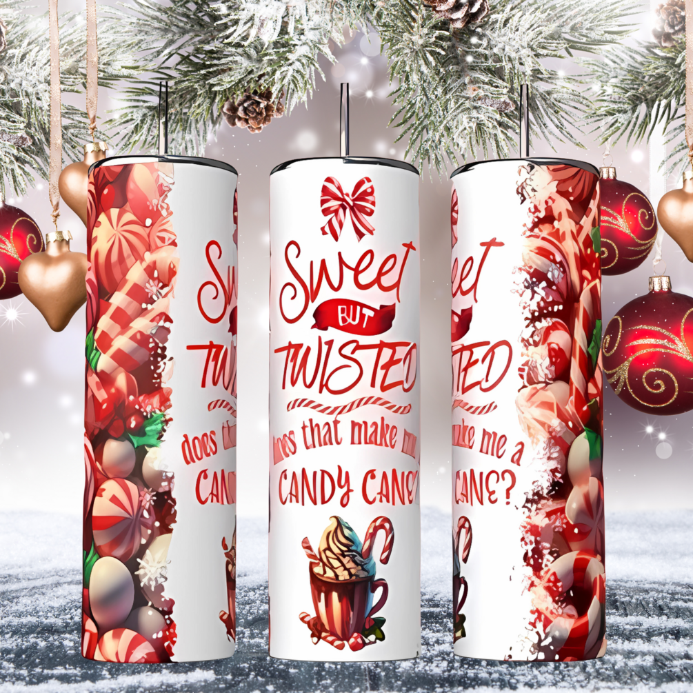 20oz skinny straight tumbler wrap png, Sweet but Twisted, candy cane png, funny Christmas png, sarcastic Christmas png
